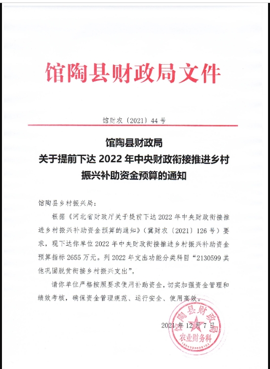上一篇:馆陶县财政局关于提前下达2022年省级财政衔接推进乡村振兴补助资金预算的通知