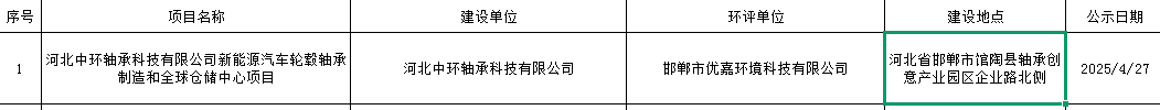 河北中环轴承科技有限公司新能源汽车轮毂轴承制造和全球仓储中心项目