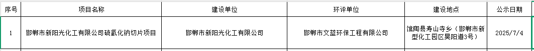 馆陶县行政审批局2025年7月4日建设项目环评文件受理情况公开