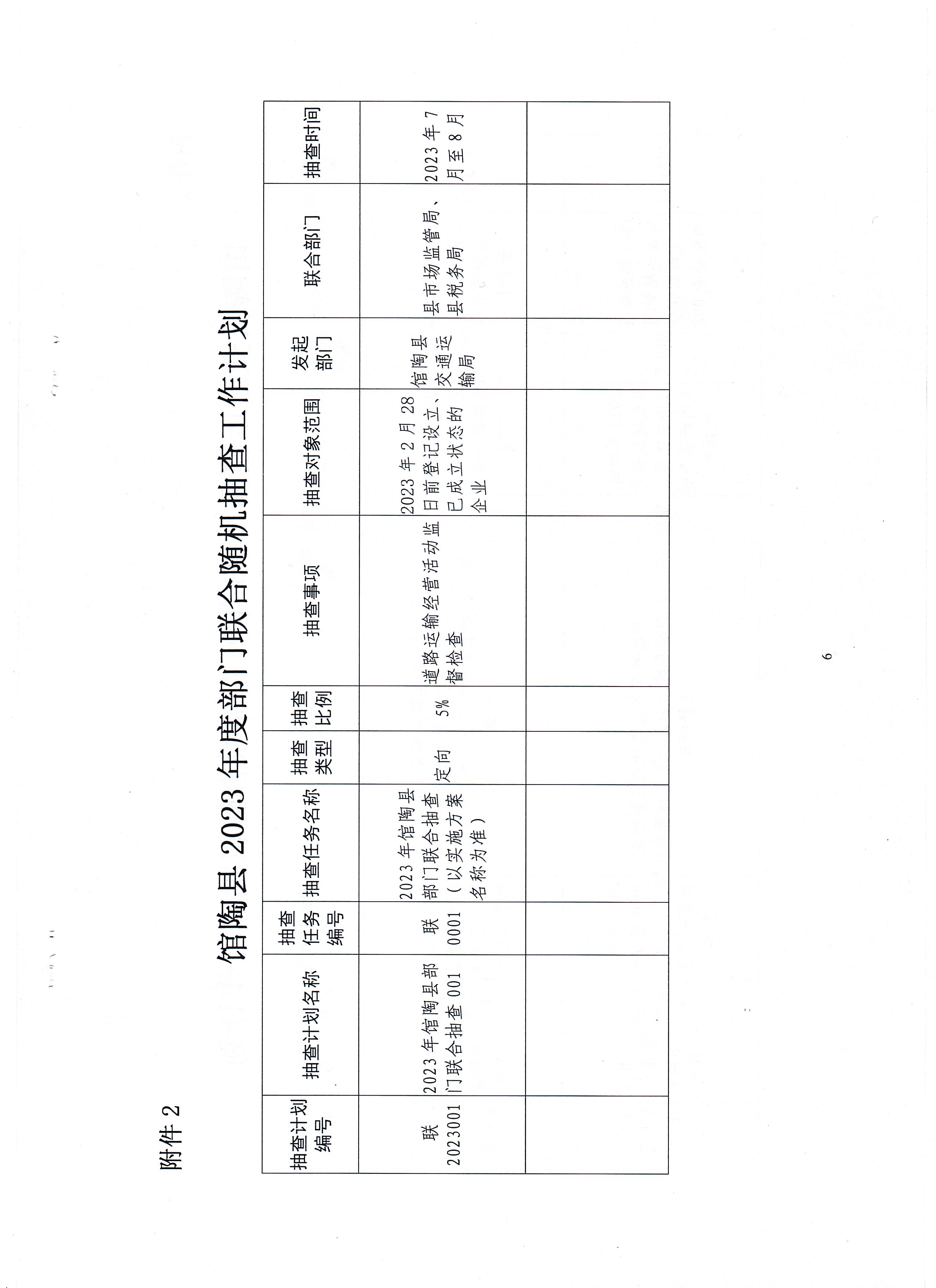 2.馆陶县交通运输局2023年度部门联合随机抽查工作计划