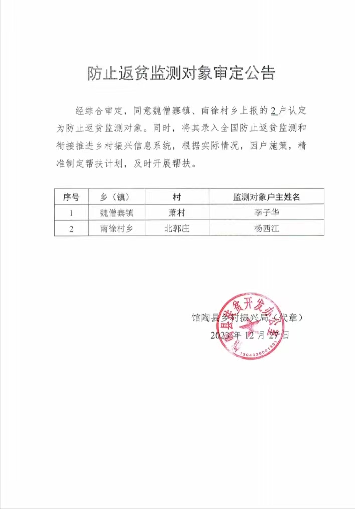 【信息时间:2023-12-28 发布机构:馆陶县乡村振兴局 】