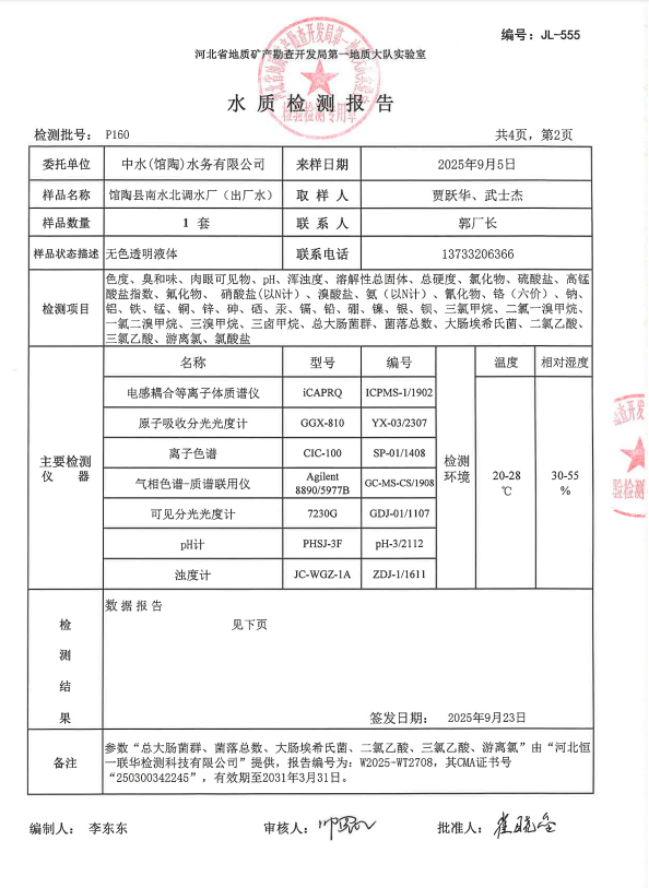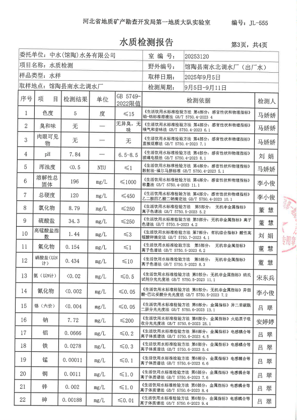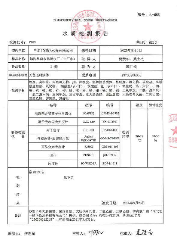 上一篇:2025年第三季度馆陶南水北调末梢水(金正苑小区)