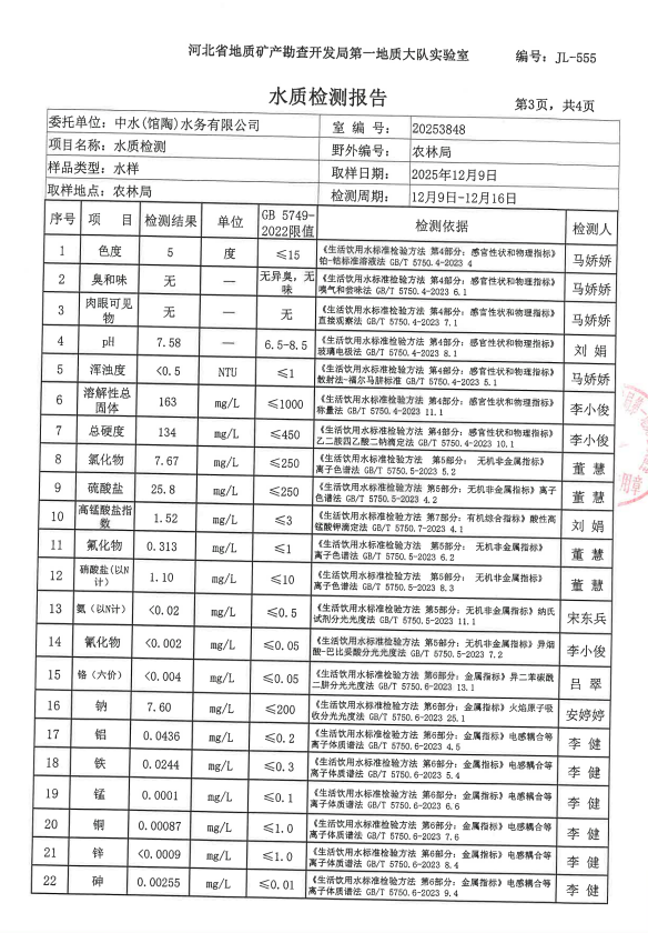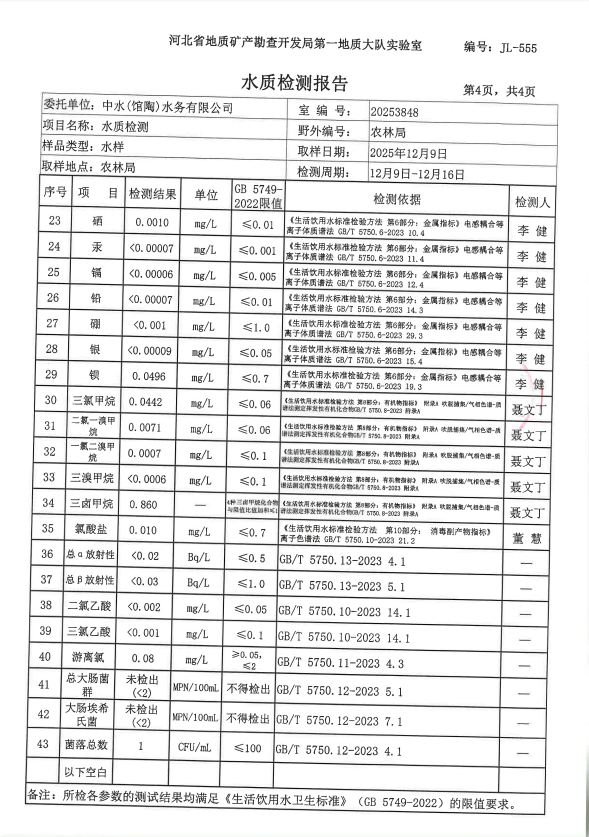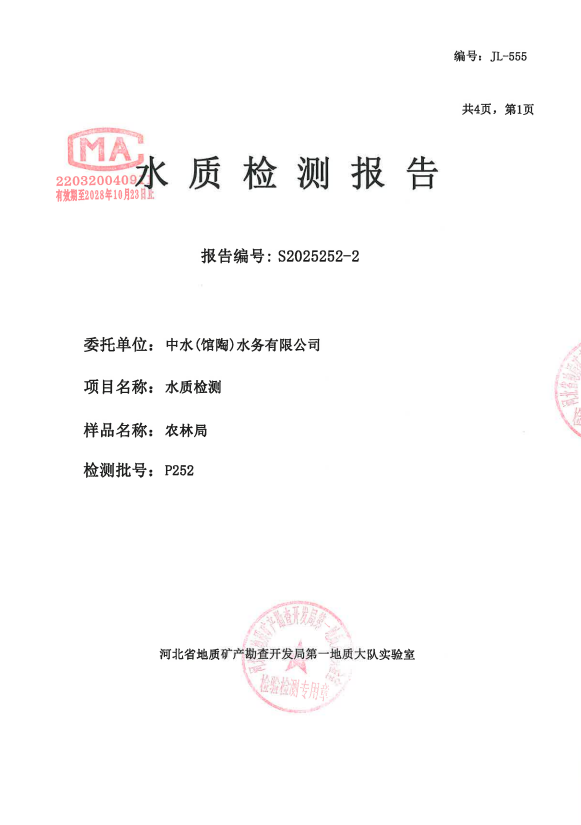 下一篇:2025年第四季度馆陶水厂出厂水水质检测报告