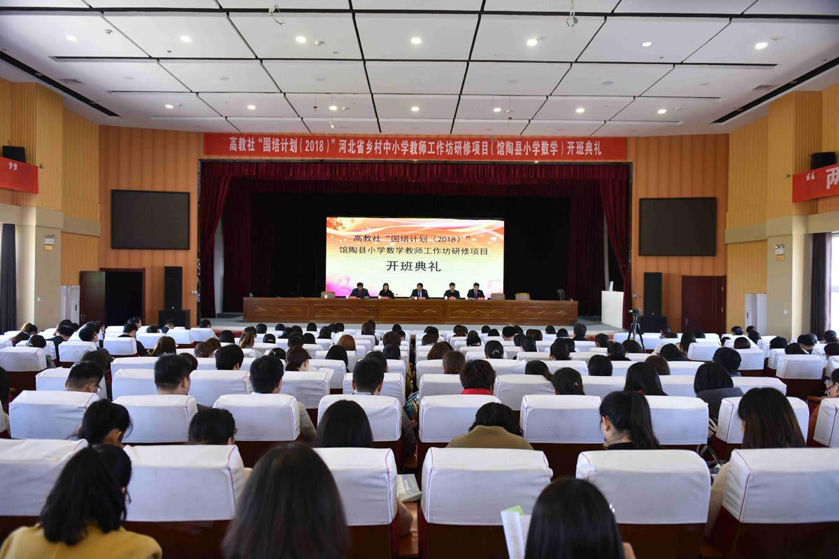 4月14日上午,由高等教育出版社教师发展中心和馆陶县教师进修学校协同承担的“国培计划(2018)”河北省乡村中小学教师工作坊研修项目(小学数学)开班仪式在青少年活动中心三楼多功能报告厅隆重举行。高教社教师发展中心河北中心国培项目负责人潘达,北京市东城区教师研修中心小学数学教研员、北京市骨干教师孙海燕及邢台市临西县教师发展中心副主任孙东霞应邀出席仪式。县教育体育局党组书记、局长赵树新,县招生办副主任、教师进修学校负责人温天华,县教育体育局副科级干部左震出席仪式。县教师进修学校有关同志及各学校主管副校长、小学数学教师等共计300余人参加了开班仪式。