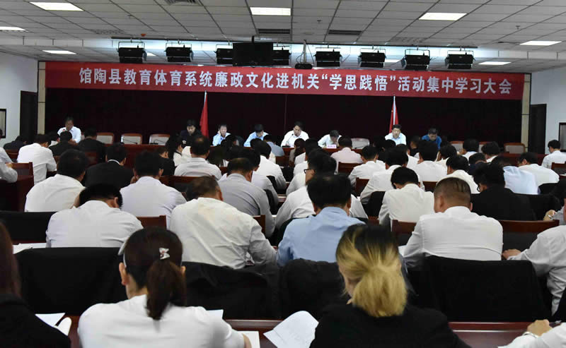 5月13日上午,馆陶县教育体育局在局机关11楼会议室召开教育体育系统廉政文化进机关“学思践悟”活动集中学习大会。局领导班子成员出席会议,机关全体干部职工、各学区中心校、中小学校校长、幼儿园园长及民办学校校(园)长参加会议。