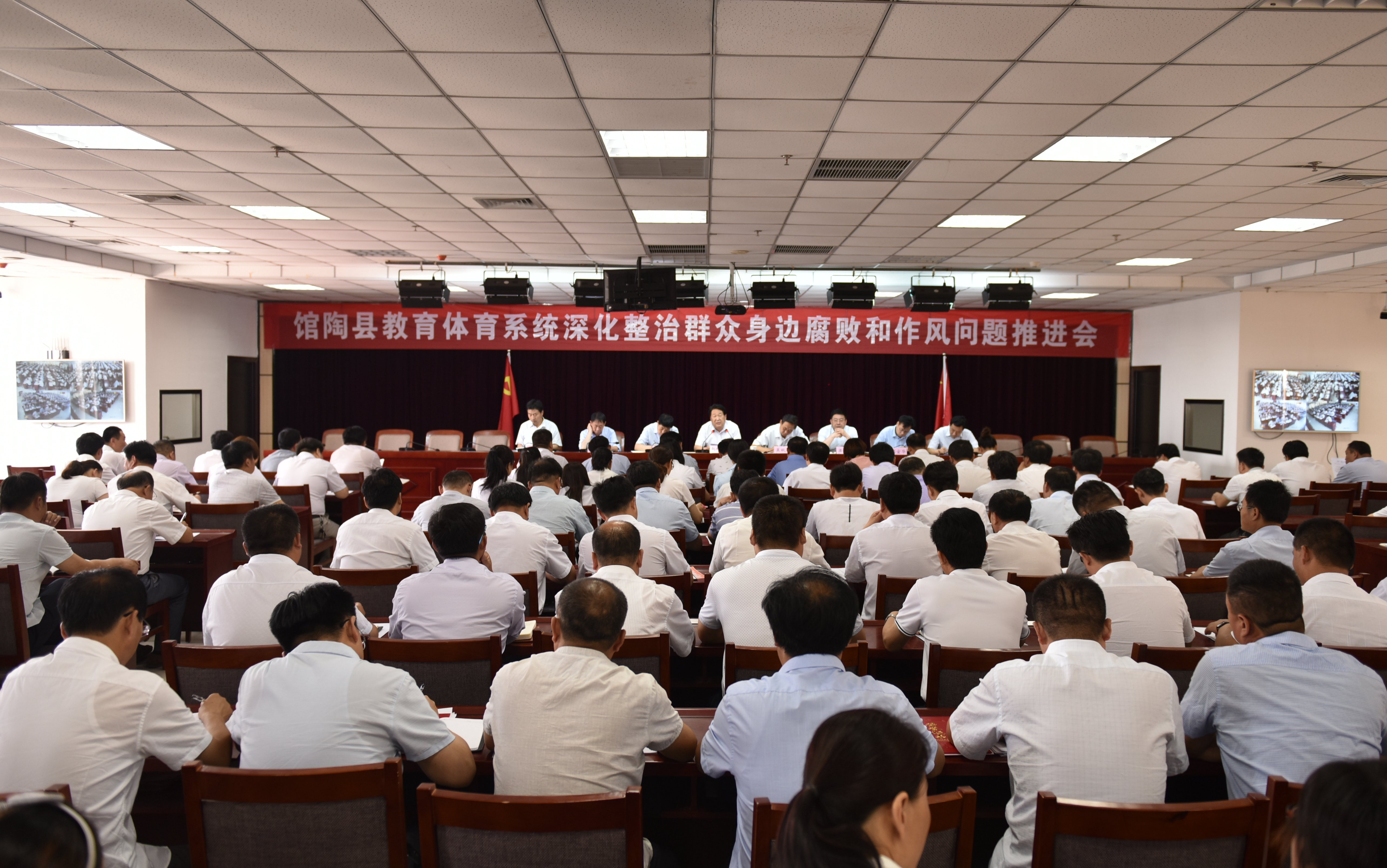 6月10日上午,馆陶县教育体育系统深化整治群众身边腐败和作风问题推进会在机关11楼会议室召开。局领导班子成员出席会议,机关全体干部职工、各学区中心校、中小学校校长、幼儿园园长及民办学校校(园)长参加会议。