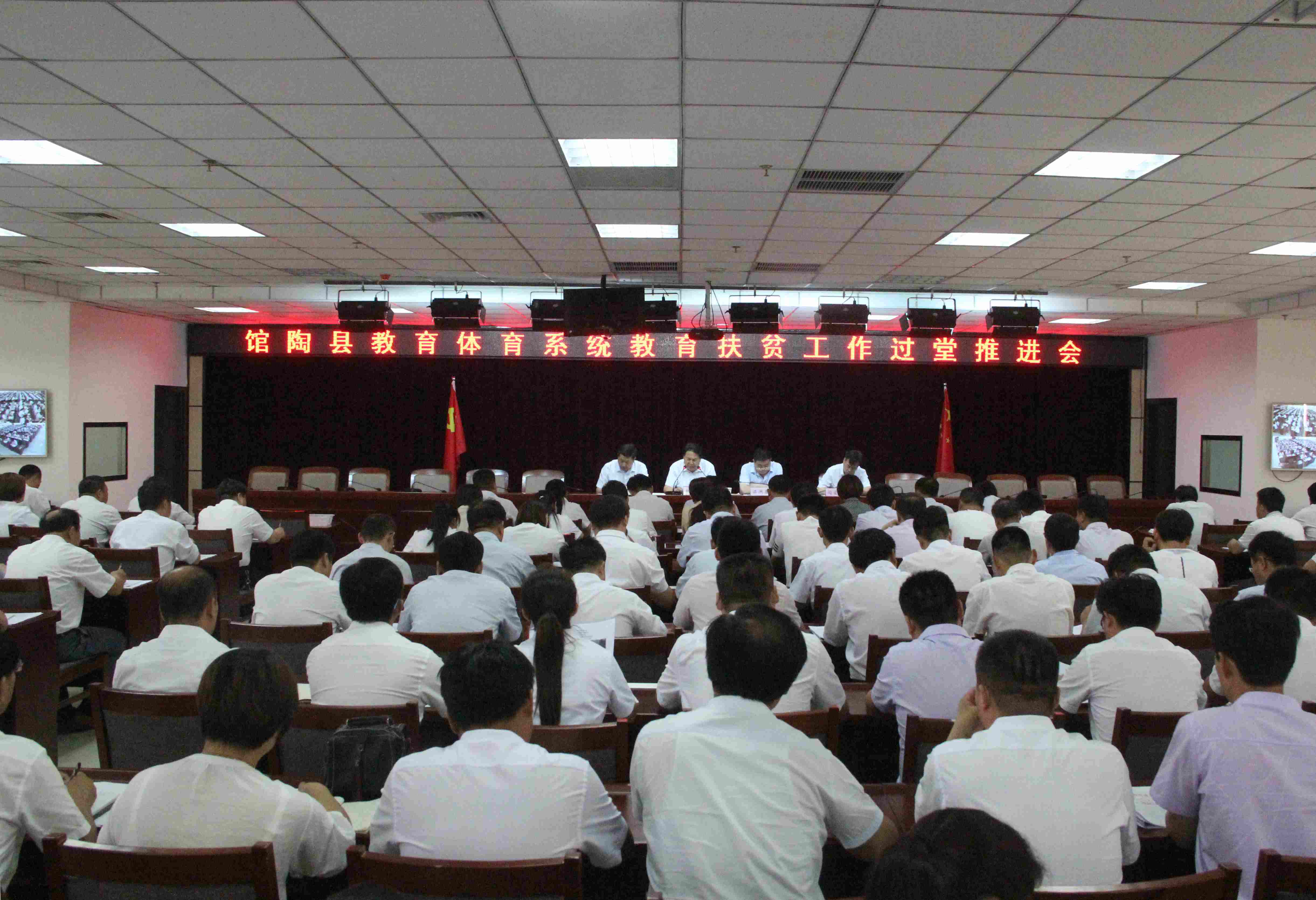 6月24日上午,馆陶县教育体育系统教育扶贫工作过堂推进会在机关11楼会议室召开,局领导赵树新、梁洪喜、马士利、闫宜华出席会议,机关全体干部职工、各学区中心校、中小学校校长、幼儿园园长及民办学校校(园)长参加会议。