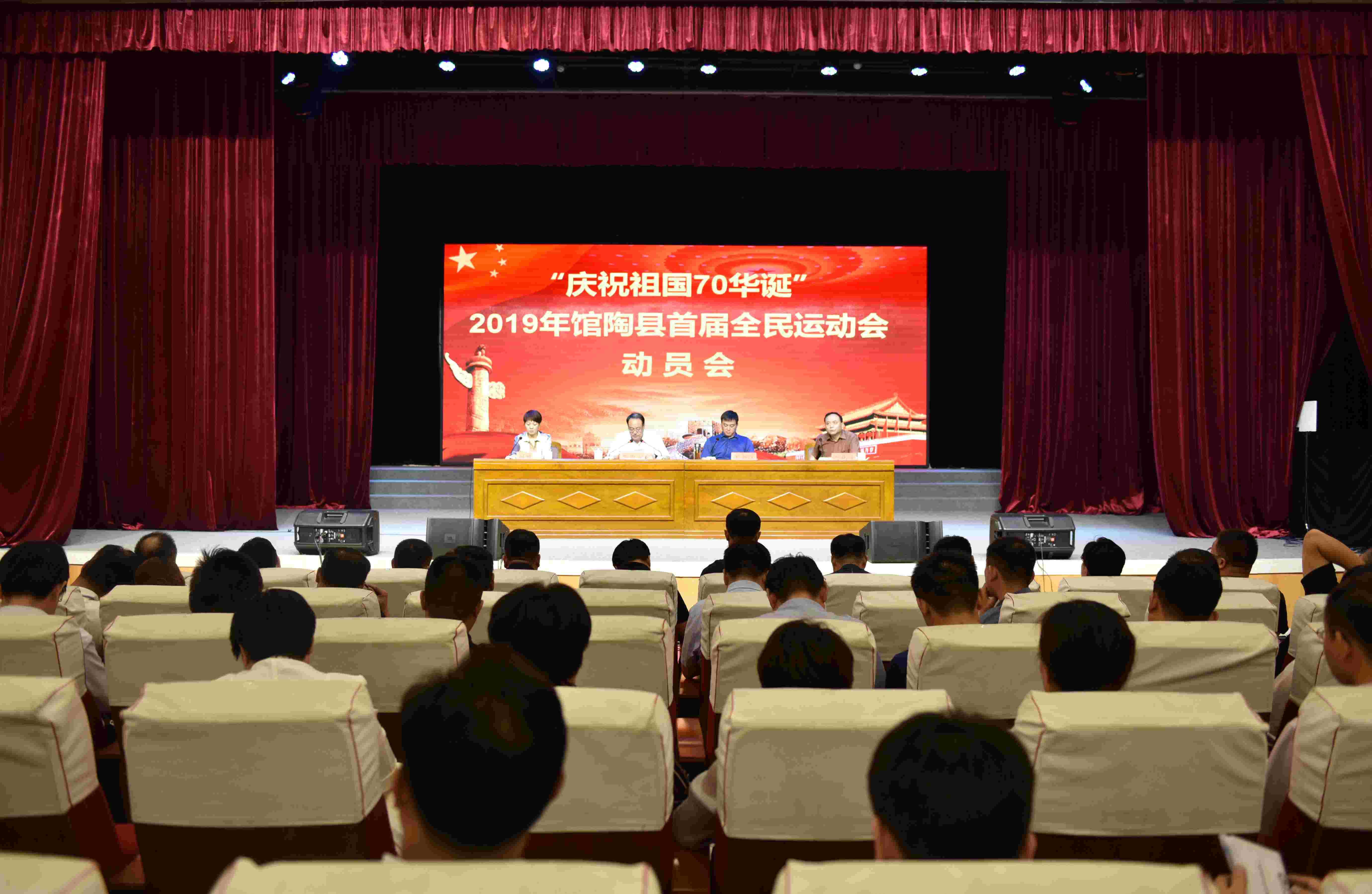 9月6日,2019年馆陶县首届全民运动会动员大会在青少年活动中心三楼报告厅举行。县领导樊四明、王新江、胡桂芹、沈化文出席会议,县直各部门负责人、各乡(镇)党委书记、粮画小镇党委书记参加会议。