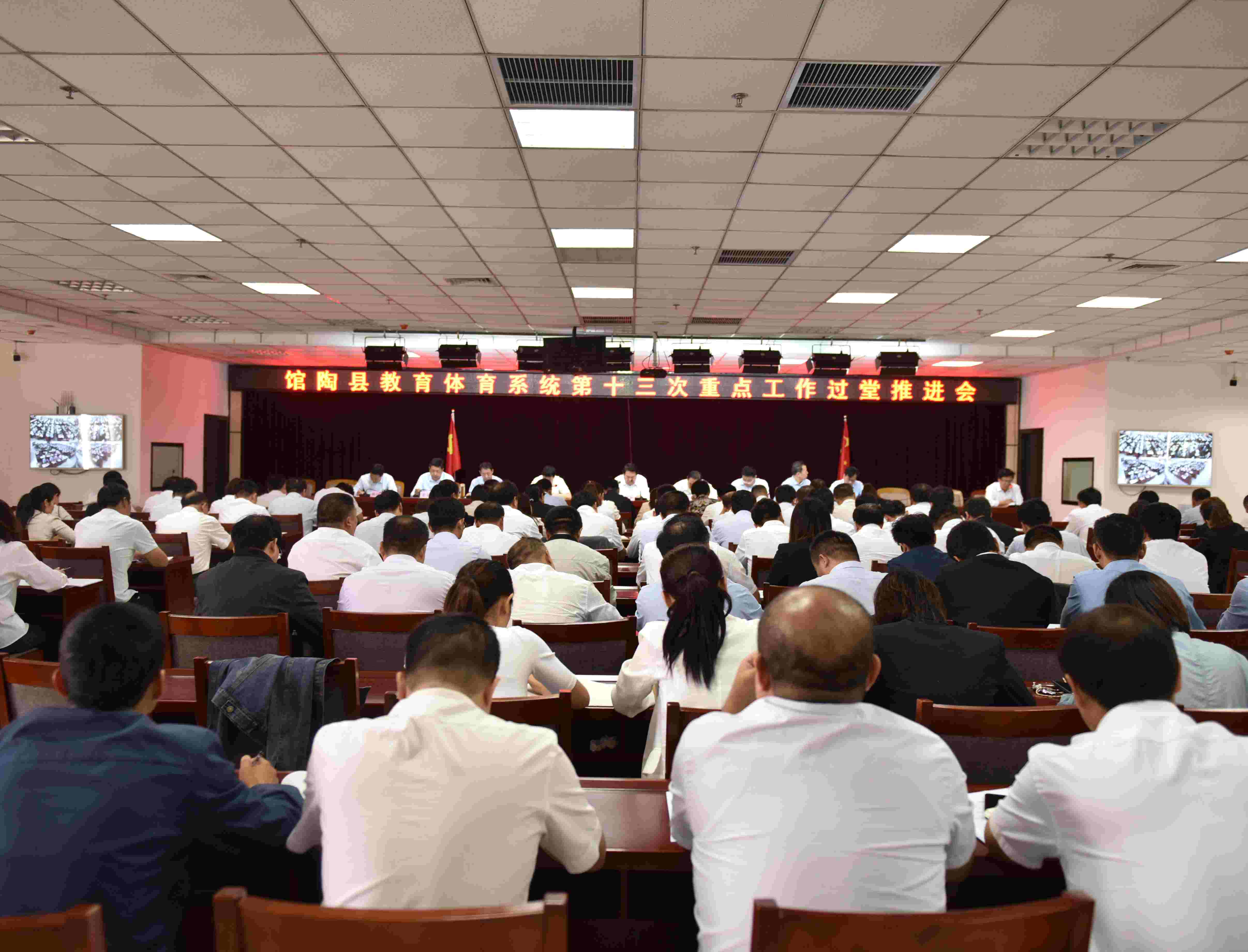 9月16日,馆陶县教育体育系统第十三次重点工作过堂推进会在机关十一楼会议室召开。局领导班子成员出席会议,机关全体干部职工、各学区中心校、中小学校校长、幼儿园园长及民办学校校(园)长参加会议。