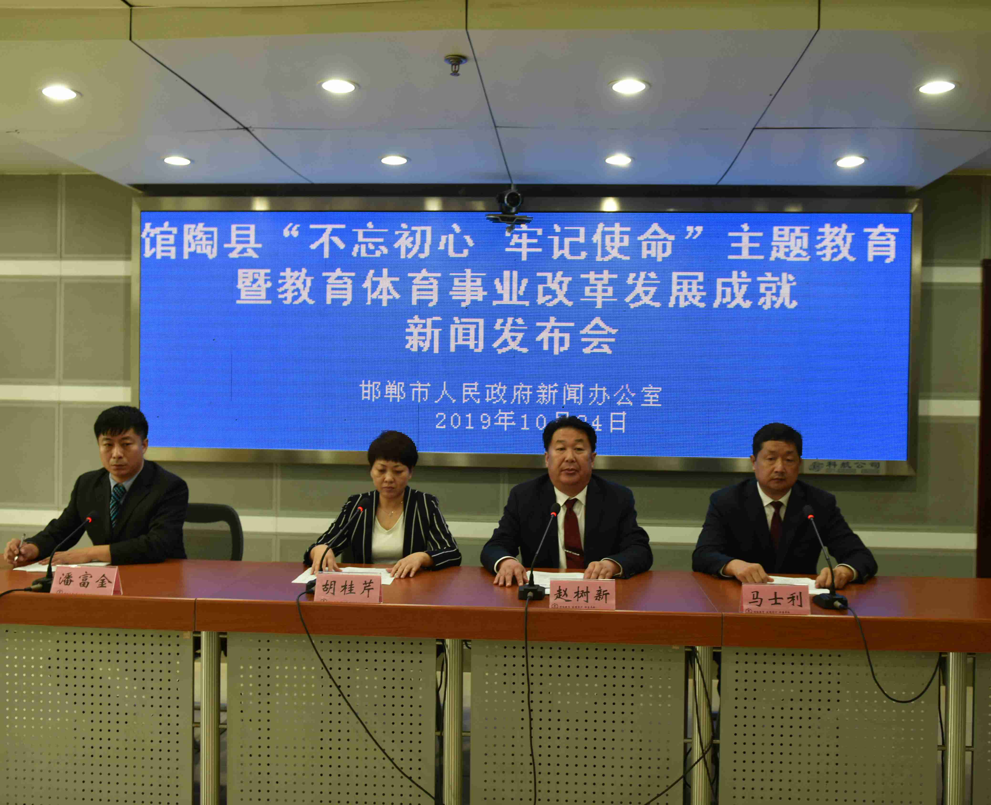 10月24日上午,馆陶县“不忘初心、牢记使命”主题教育暨教育体育事业改革发展成就新闻发布会在邯郸市政务大厅5楼新闻发布厅召开。馆陶县政府副县长胡桂芹出席新闻发布会并作新闻发布。馆陶县教育体育局党组书记、局长赵树新及副局长马士利回答记者提问。市委宣传部新闻发布处处长潘富金主持新闻发布会。